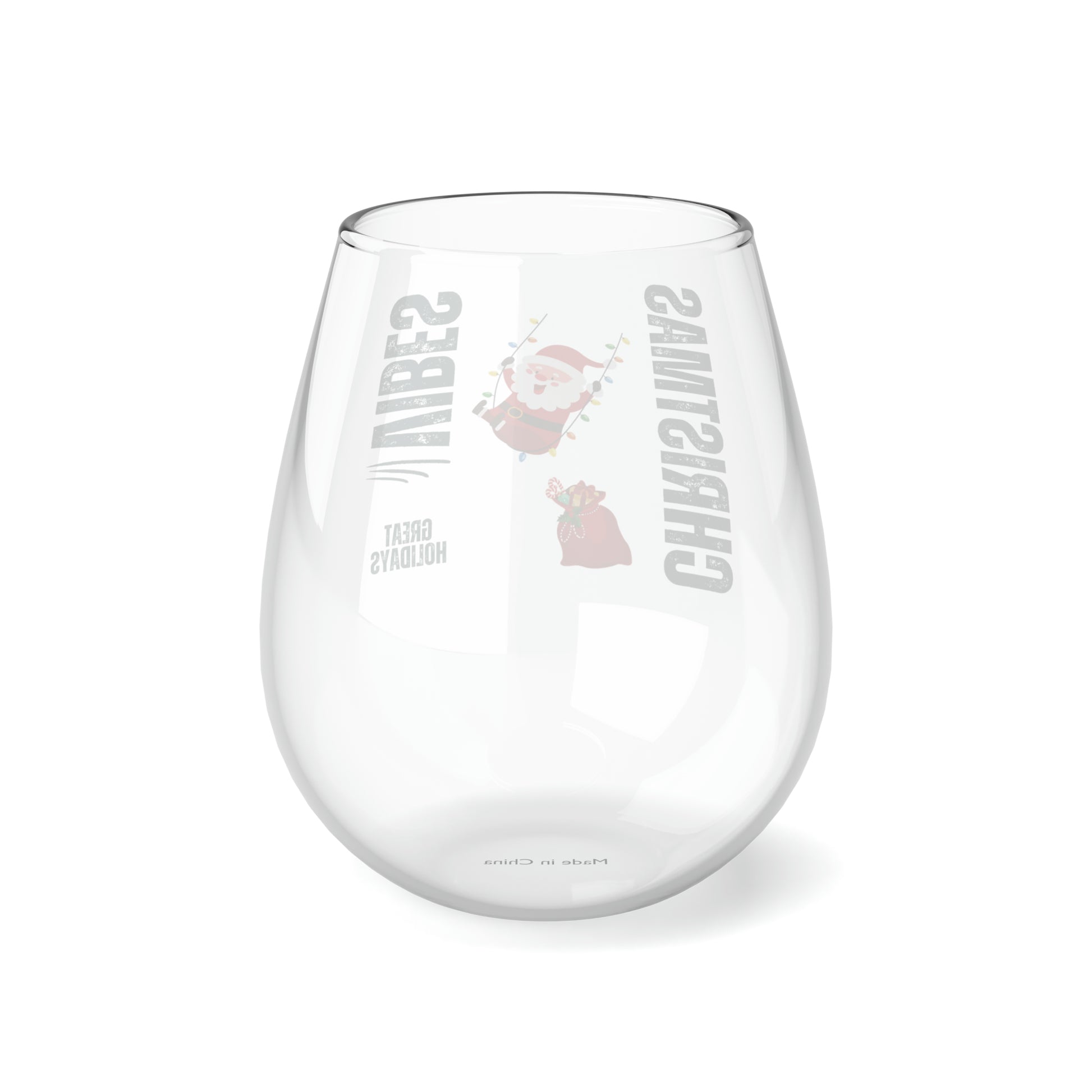 Stemless Wine Glass - Santa Swinging